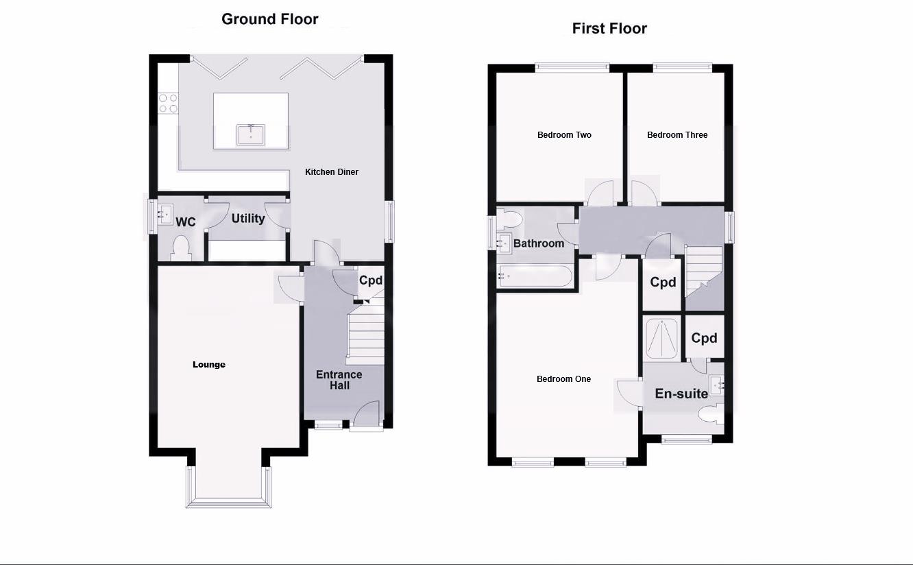 Composite entrance door, tiled flooring, two pendant light fittings and an understairs cupboard.